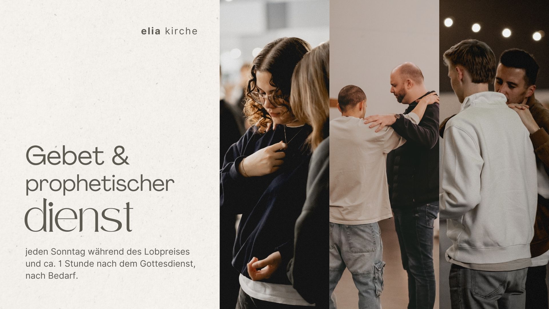 GEBET IM GOTTESDIENST Zeige grösseres Bild »GEBET & PROPHETISCHER DIENST« jeden Sonntag während dem Lobpreis und ca. 1 Stunde nach dem Gottesdienst, nach Bedarf Rudi Töws2026-01-11T09:10:58+01:00 Ähnliche Beiträge elia GEBET elia GEBET Dezember 25th, 2025 | 0 Kommentare HEALING ROOMS HEALING ROOMS Dezember 25th, 2025 | 0 Kommentare RAUM DER STILLE RAUM DER STILLE Dezember 25th, 2025 | 0 Kommentare GEBETSWOCHE 2026 GEBETSWOCHE 2026 November 28th, 2025 | 0 Kommentare DER KREUZWEG DER KREUZWEG April 6th, 2025 | 0 Kommentare